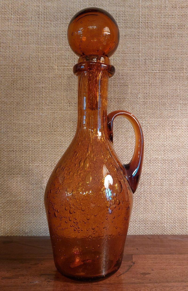 Bouteille en verre Bullé Biot avec son bouchon de la verrerie de Biot;  signé année 60
