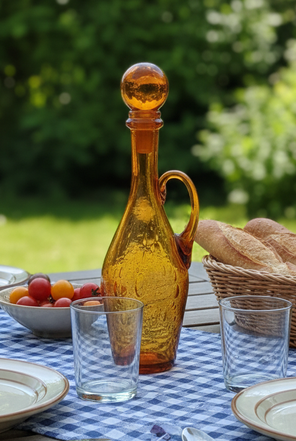Cette bouteille en verre bullé de Biot est bien plus qu’un simple contenant ; c’est un morceau d’histoire de l’artisanat français. Chaque bulle d’air, emprisonnée volontairement entre deux couches de verre lors du soufflage, rend cette pièce unique. Sa texture organique et sa transparence apportent une touche de lumière et de caractère à toute décoration d’intérieur.