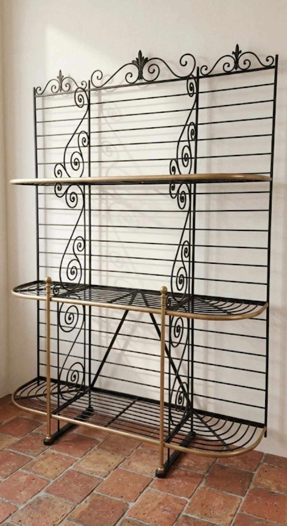 Étagère de boulangerie en fer forgé et laiton