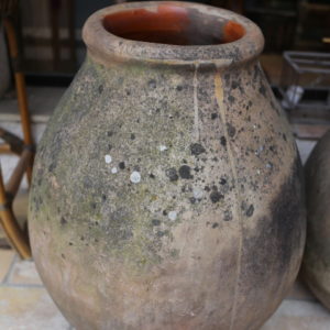 Sa silhouette ovoïde présente des courbes harmonieuses et équilibrées. Le bec verseur caractéristique facilite le service avec précision. Une couverte vernissée protège la partie supérieure de l’objet. Ce vernis apporte une brillance subtile et des reflets chaleureux. Les nuances de terre varient du beige rosé à l’ocre profond. La texture de la terre cuite offre un toucher authentique et minéral. Chaque détail souligne la main de l’artisan potier de l’époque. Cette jarre constitue ainsi un élément décoratif de premier plan.