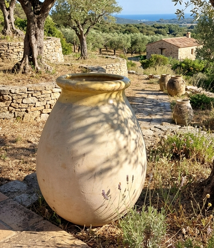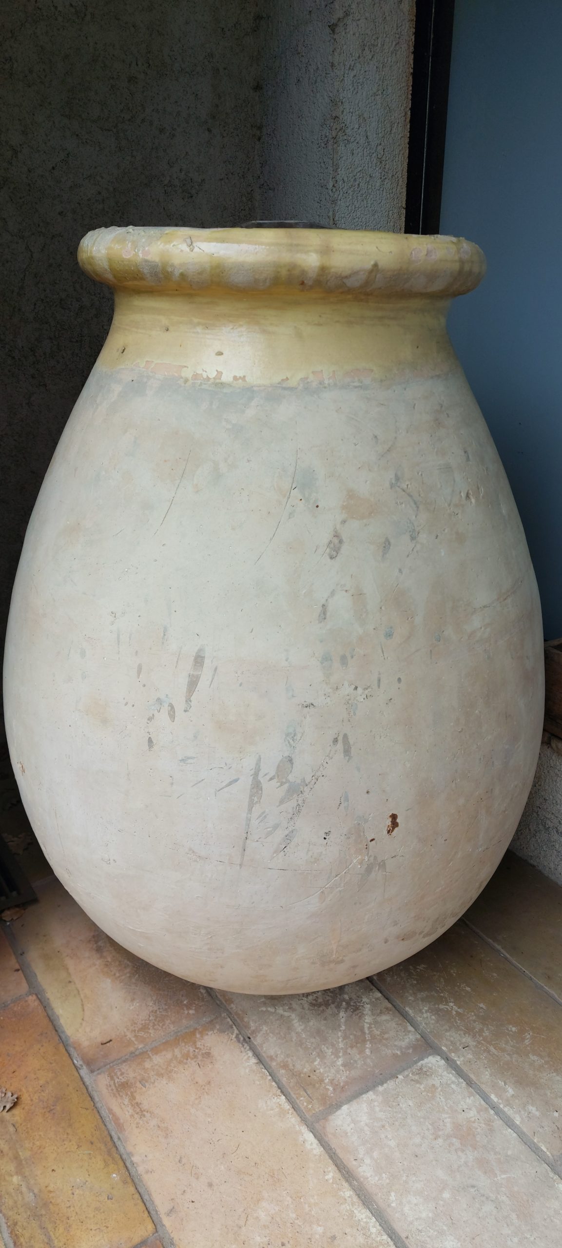 La fabrication de cette jarre repose sur la technique ancestrale de la corde. Par conséquent, chaque courbe résulte d’un travail manuel minutieux. De plus, le 19ème siècle marque l’apogée de cette production artisanale. En effet, la terre cuite était alors utilisée pour le stockage des huiles. Ainsi, le col vernissé permettait une étanchéité parfaite de l’embouchure. Cependant, la rareté de ces grands formats augmente leur prestige actuel. De ce fait, cette pièce témoigne d’un patrimoine méditerranéen exceptionnel. Par ailleurs, elle rappelle l’excellence des ateliers de renoms comme ceux de Biot.