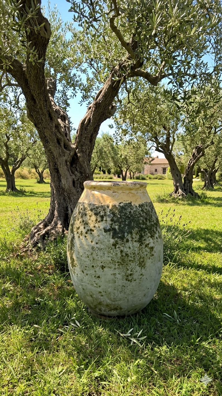 La fabrication de ces jarres monumentales relève d’un savoir-faire ancestral unique. Les artisans potiers de Biot utilisaient la technique dite « à la corde ». Cette méthode complexe permettait de façonner des pièces de grande taille sans tour. Le potier montait la jarre en enroulant une corde autour d’un gabarit interne en bois. Ensuite, il appliquait l’argile par colombins successifs sur cette structure. Une fois la pièce sèche, la corde était retirée, laissant parfois son empreinte subtile à l’intérieur. Cette technique confère à chaque jarre une robustesse et une personnalité singulières. Retrouvez d’autres jarres anciennes sur notre site.