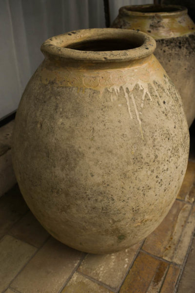 Les maîtres potiers de Biot utilisaient la technique du colombin pour créer ces volumes généreux. La terre cuite locale offre des nuances chaudes et naturelles. De plus, le col de cette jarre arbore une superbe glaçure caractéristique. Ce vernis protégeait autrefois les denrées précieuses comme l’huile d’olive. Par ailleurs, la présence d’une estampille en forme de Croix de Malte stylisée authentifie son origine. Ce sceau prestigieux renforce considérablement la valeur historique de l’objet. Vous pouvez explorer d’autres pièces similaires dans notre section dédiée aux antiquités de jardin.